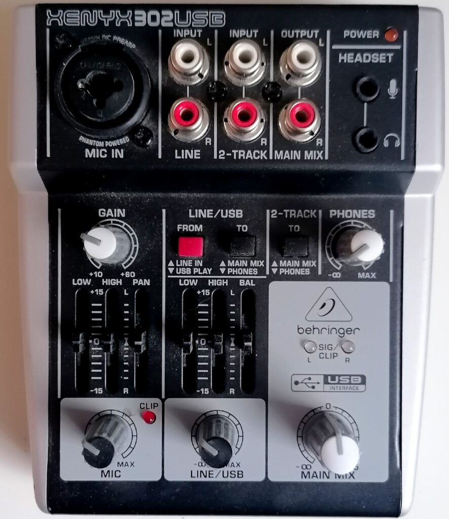 Zum Beispiel das Behringer Xenyx 302 USB erfüllt diese Voraussetzungen. Es ist zudem günstg über Kleinanzeigen zu erwerben. Es gibt sicherlich noch andere Mischpulte, die geeignet sind. Bei mir ist das Behringer im Einsatz.